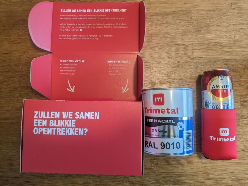 In het pakket zat een selectie van producten van Trimetal, een merk dat ik persoonlijk erg waardeer vanwege de uitstekende kwaliteit van hun verf. Het is altijd fijn om zulke professionele producten in handen te hebben, want ze helpen me om het allerbeste werk te leveren voor mijn klanten. Of het nu gaat om het verven van muren, deuren of kozijnen, Trimetal verf zorgt altijd voor een prachtig, langdurig resultaat.